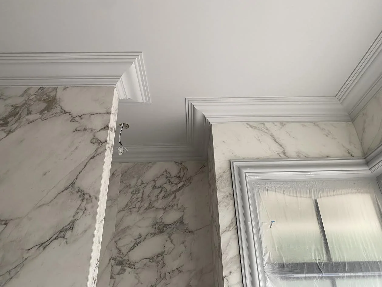 Installation and high quality finishing of ornate plaster cornice. We can provide and install the size and pattern of any cornice your project requires.